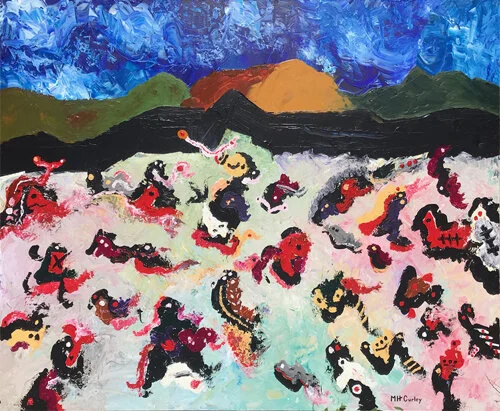 Curley is an accomplished poet and her poetic verbal acuity seems to inform the strokes of her brush.”